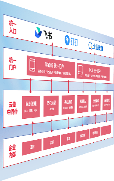 对协作平台提供支持服务,,,支持企业应用与协作平台对接,,,包含组织同步、、、、消息集成、、、、待办集成等。。。支持目前主流的协作平台:钉钉、、、企微和飞书。。