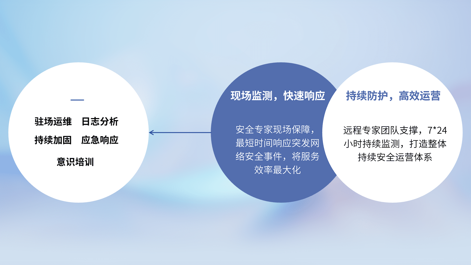 7X24小时持续监测安全事件,保持安全策略有效性,降低资产脆弱性风险,,,,精准拦截黑客攻击,,,,减少被黑客利用的机会,,,第一时间遏制,,降低损失。。。